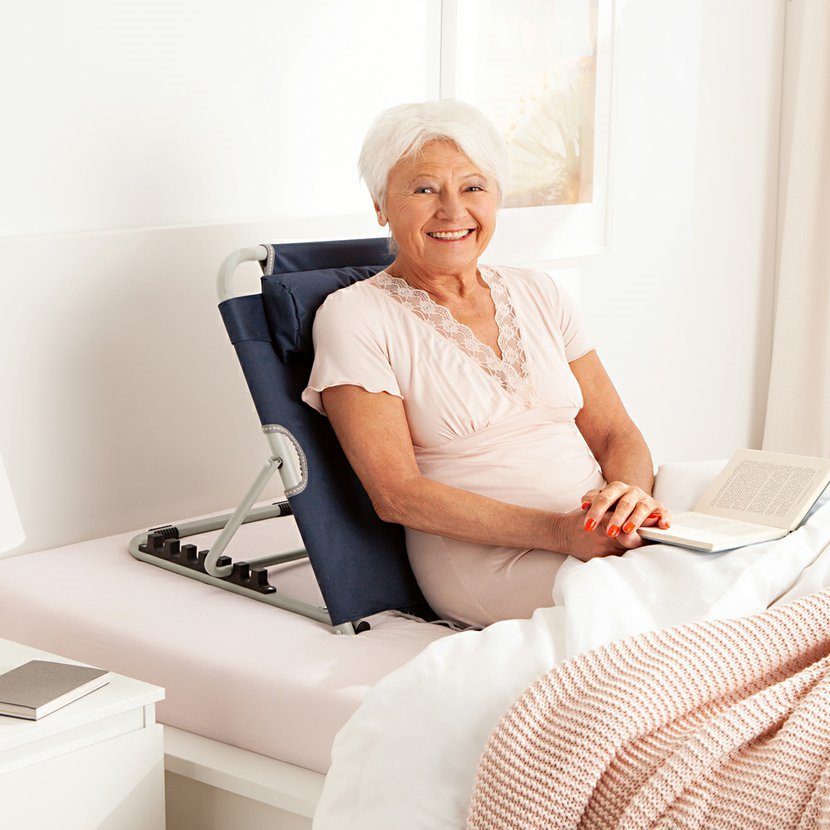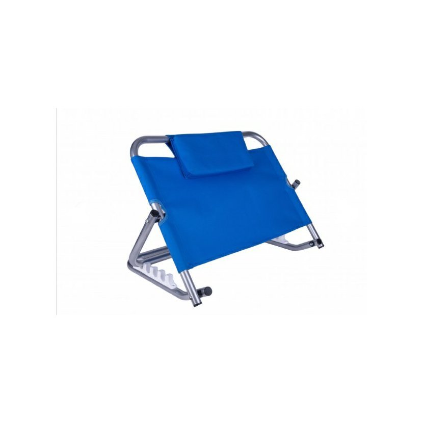 Přenosná polohovatelná opora zad s krčním polštářkem je pomůcka pro pacienty, kteří jsou z různých příčin upoutáni na lůžko. Opora zad umožňuje nastavení sklonu v pěti stupních. I osoby upoutané na lůžko lze s oporou snadněji zvednout a uvést do požadované polohy. Je potažena odolnou tkaninou. Zádová opěrka Vám umožní pohodlně jíst v posteli, sledovat televizi nebo číst knihy. Vhodná pro každý typ postele. Mohou ji používat jak dospělí i starší děti. Oporu zad lze zcela sklopit, díky tomu se snadno přemisťuje z místa na místo a vejde si i do relativně úzkého prostoru. Rozměry: Opěradlo: 50 x 58 cm Základna: 43 x 54 cm Barva: tmavě modrá Materiál: 100% polyester Rám: kov