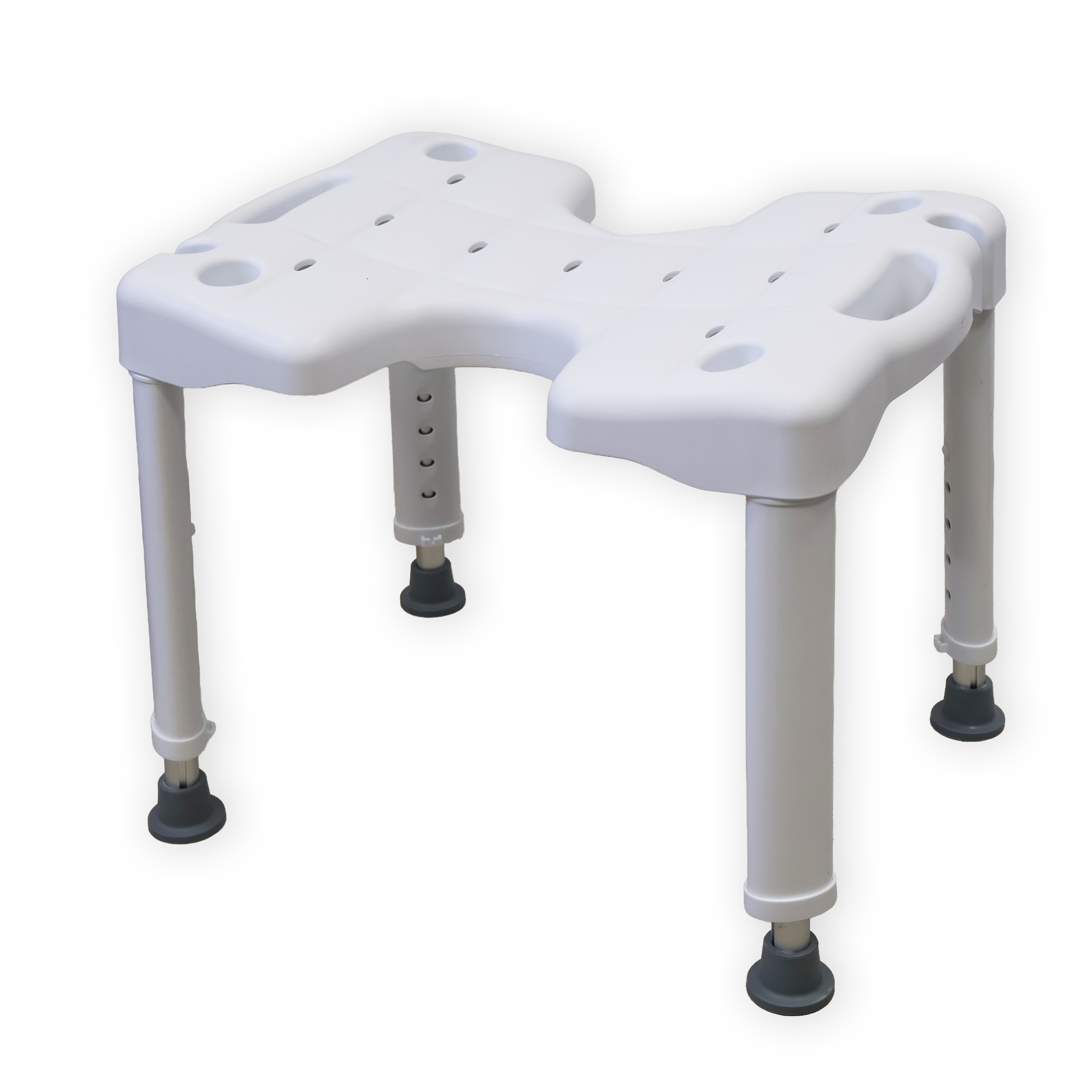 Díky kompaktnímu designu bez opěradla je židle ideální do menších sprchových koutů. Ergonomické sedátko s výřezem ve tvaru U usnadňuje intimní hygienu a zajišťuje pohodlné sezení i při delším používání.
