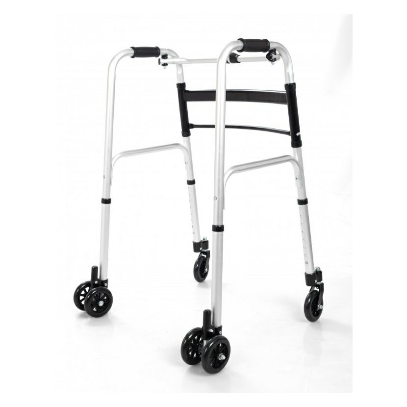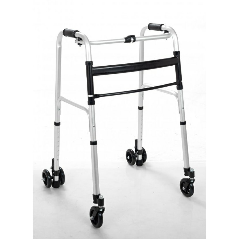 Díky konstrukci z vyztuženého hliníku je lehké a odolné. Při stlačení chodítka směrem dolů se stabilně zapře o nožky, při nadzvednutí ulehčují pohyb otočná kolečka. Skládání je snadné a rychlé pomocí jednoho tlačítka.