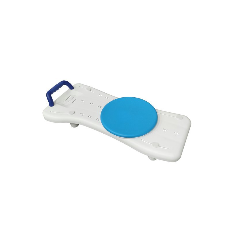Otočná sedačka na vanu s nosností 100 kg, protiskluzovými rukojeťmi a sedákem o průměru 30 cm. Zajišťuje bezpečné a pohodlné koupání pro seniory a osoby s omezenou pohyblivostí.