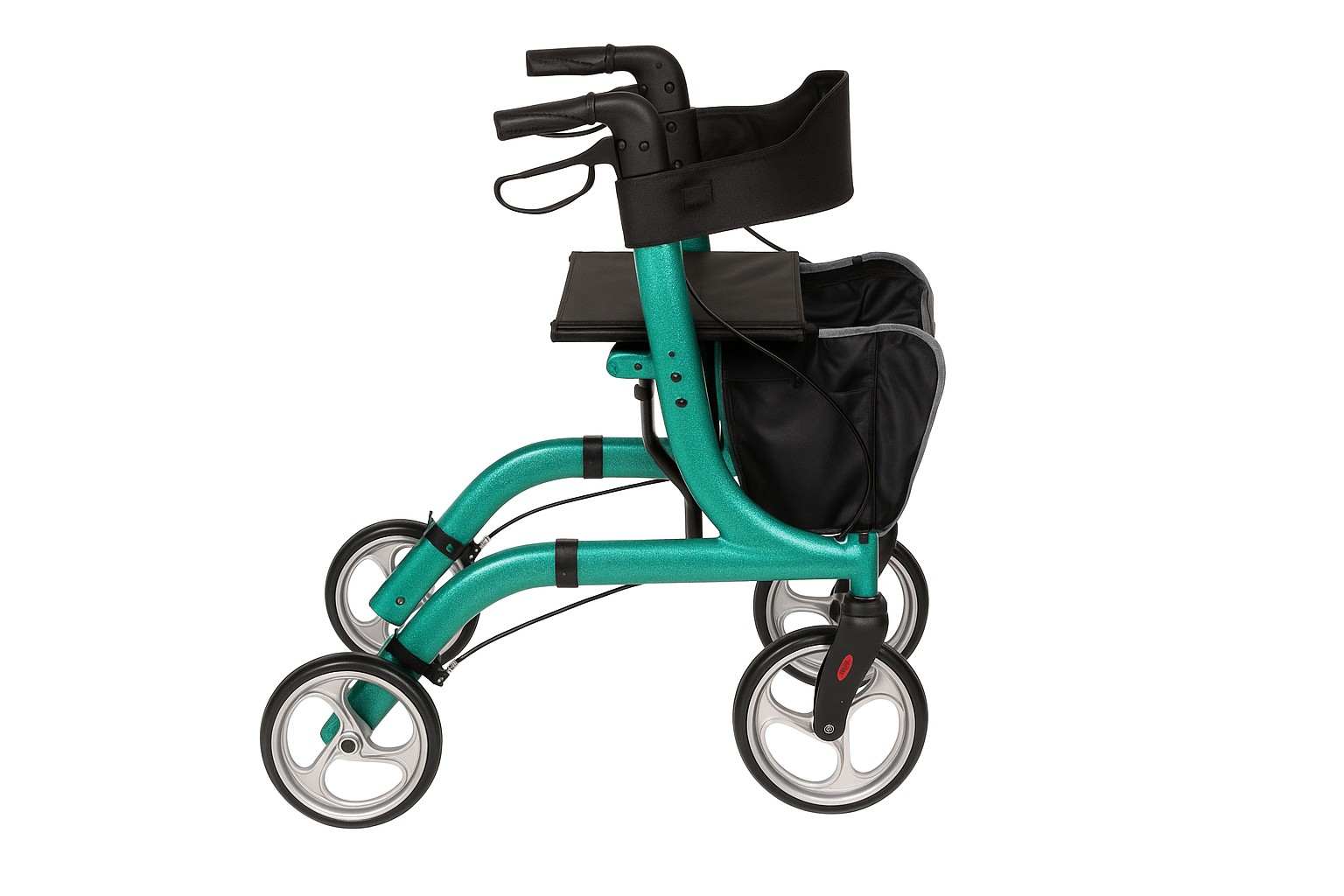 Ergonomické brzdy, nastavitelná výška rukojeti a pohodlné sedátko se postarají o komfort a bezpečnost při každodenním používání. Součástí je také nákupní taška a držák na hůl, což zvyšuje samostatnost uživatele.