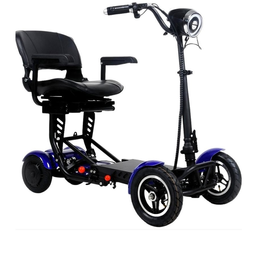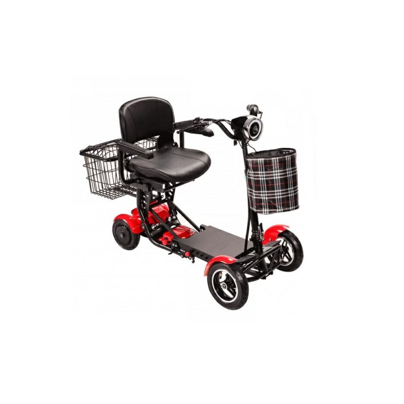 Elektrický invalidní skládací vozík/skůtr se stabilní konstrukcí. Je svižný, energeticky úsporný a tichý. Dostatek úložného prostoru, světelná lampa. sklopné područky. Dojezd až 20 km.