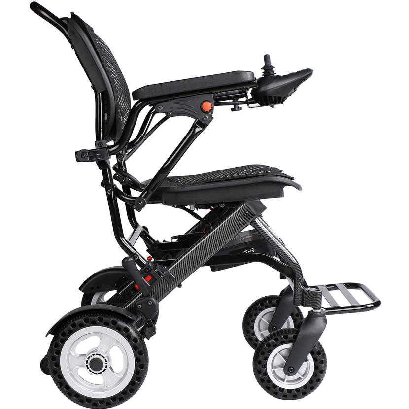 Moderní elektrický vozík ANTAR AT52326 je navržený pro uživatele hledající mobilitu a komfort v kompaktním balení. Díky hmotnosti pouhých 13,9 kg a skládací konstrukci je snadno přenosný a ideální na cesty. Rám je vybaven karbonovým nátěrem odolným vůči poškrábání a mezeře bezpečnosti zabraňující samovolnému sklopení.