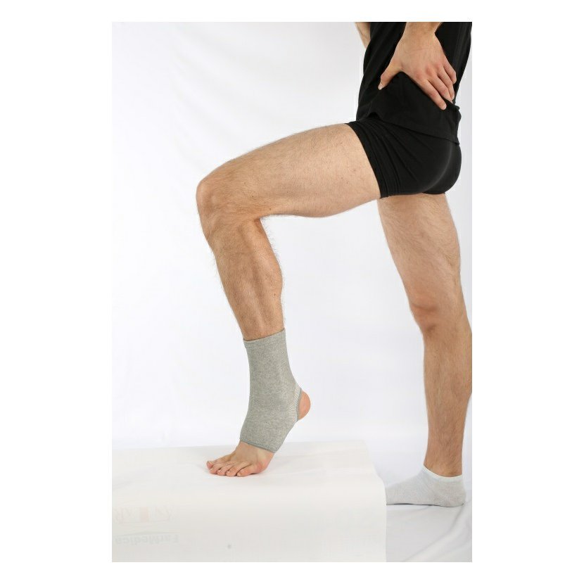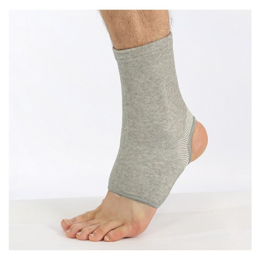 Bandáž kotníková je vyrobená z pružného, prodyšného materiálu, u kterého je hlavní složkou bambusové vlákno, s přídavkem bavlny a spandexu. Zpevňuje kotníkový kloub, zajišťuje kompresi a jemně zahřívá kloub. Umožňuje fungování kloubu v optimálním anatomickém rozsahu pohybu, koriguje jeho deformace a předchází patologickým změnám. Zpevňuje hlezenní kloub, preventivně chrání před úrazem, zvláště je-li kloub oslabený, např. v případě revmatických a degenerativních. Při výrobě jsou použité bambusové vlákna, díky přítomnosti jejich přirozené látky mají antibakteriální a protiplísňové vlastnosti. Navíc pěstování bambusu nevyžaduje používání chemických látek a pesticidů, tudíž jeho vlákna neobsahují toxické dráždivé látky. Velikosti boty.
