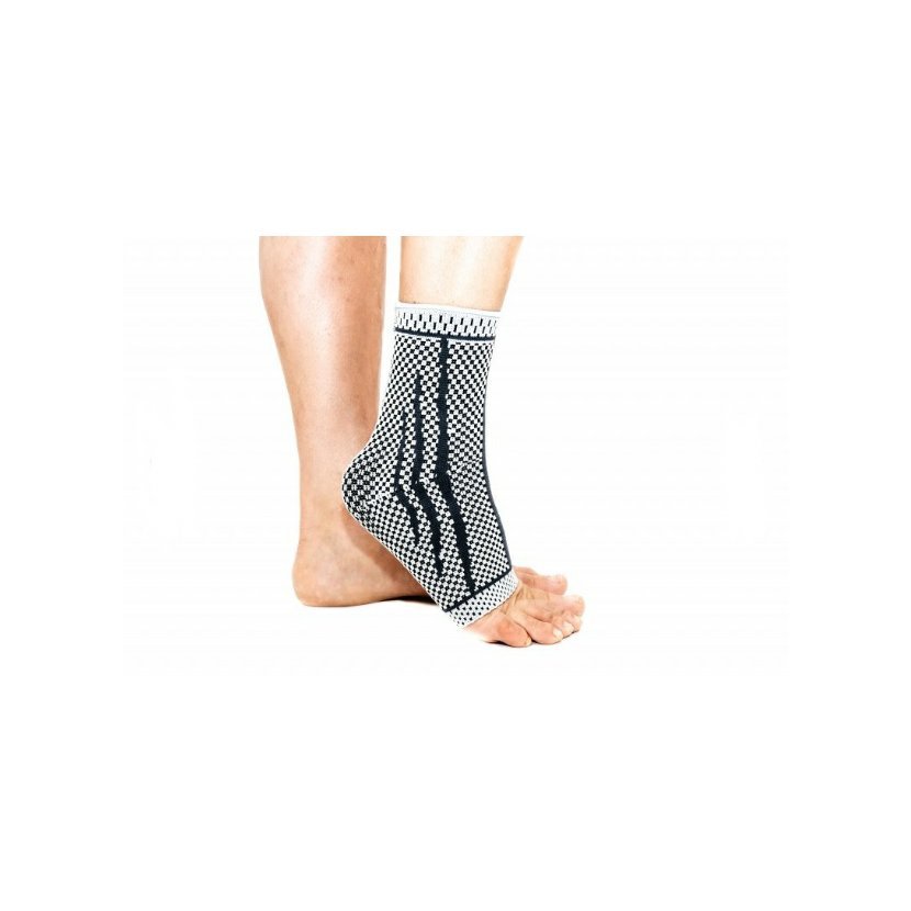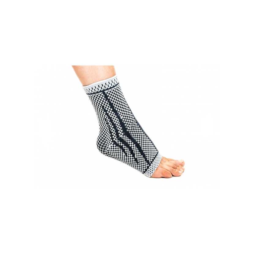 Ortéza hlezenního kloubu se silikonovou výztuží zajišťuje správné fungování kloubu v optimálním anatomickém rozsahu pohybu. Silikonové vložky ve tvaru J zajišťují stlačení, zpevnění kloubu a masáž kolem paty. Ortéza kotníku je vyrobena z elastického prodyšného materiálu a je ušita tak, aby lemy byly maximálně pohodlné a netlačily.