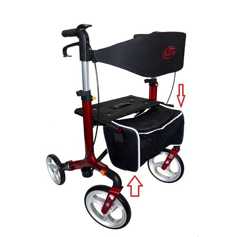 Originální náhradní díl do chodítka pro seniory AT51092/AT02011 - TAŠKA Taška je vybavena popruhem přes rameno. Opatřena na boku reflexními pásky. Zapínání na zip.