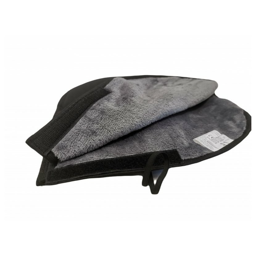 Snadná montáž je možná díky nosné gumičce a suchému zipu. Vnější vrstva je vyrobena z voděodolného materiálu a vnitřní vrstva z měkké, nadýchané tkaniny.