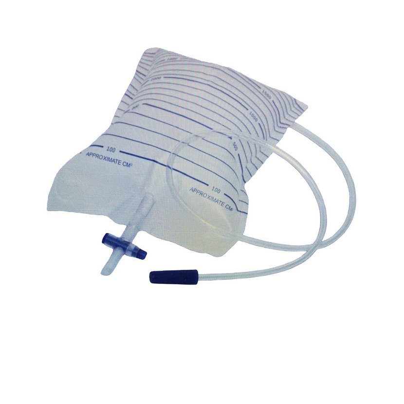 Sáček na moč s dolní křížovou výpustí o objemu 2000 ml. Sběrný sáček na moč má standardní délku odtoku 90 cm. Drén je pevný, zabraňuje jeho kroucení nebo ohýbání. Sáček na moč zajišťuje volný odtok moči. Použitelnost max. 24hodin pro jednoho pacienta.