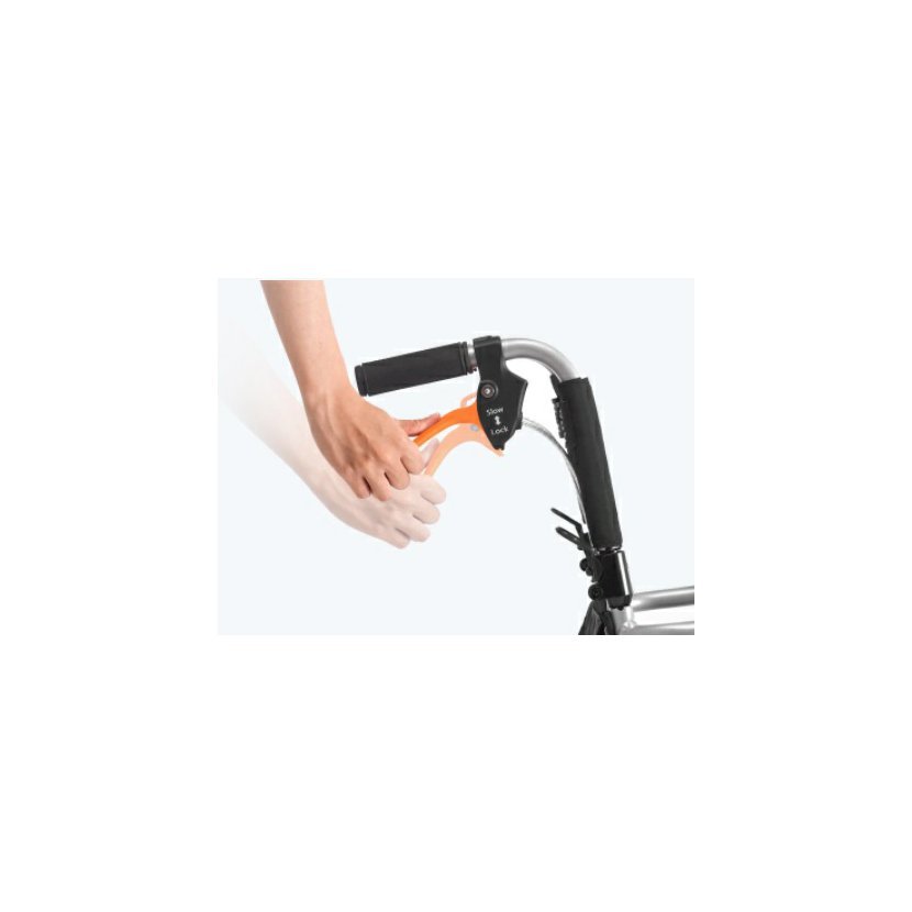 Dvojitý brzdový systém Push & Pull umožňuje doprovodu vozík přibržďovat, ale také ho úplně zabrzdit.